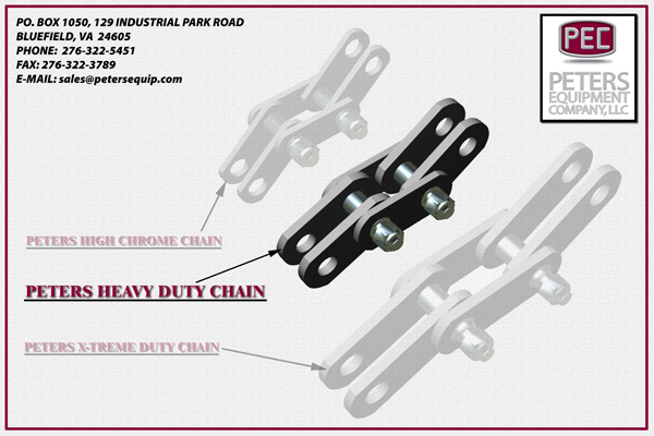 1) Heavy Duty chain design w/taller and thicker side bars.